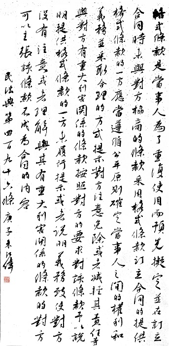 民法典第四百九十六條 格式條款是當事人為了重復使用而預先擬定,并在訂立合同時未與對方協(xié)商的條款。