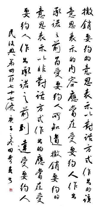 民法典第四百七十七條 撤銷要約的意思表示以對話方式作出的,該意思表示的內(nèi)容應(yīng)當(dāng)在受要約人作出承諾之前為受要約人所知道;撤銷要約的意思表示以非對話方式作出的,應(yīng)當(dāng)在受要約人作出承諾之前到達(dá)受要約人。