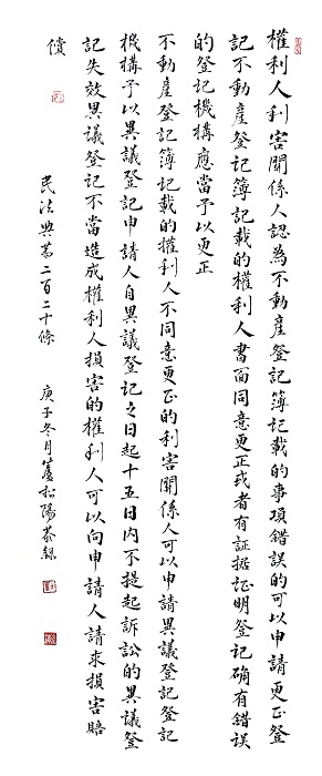 民法典第二百二十條 權(quán)利人、利害關(guān)系人認(rèn)為不動產(chǎn)登記簿記載的事項錯誤的,可以申請更正登記。不動產(chǎn)登記簿記載的權(quán)利人書面同意更正或者有證據(jù)證明登記確有錯誤的,登記機構(gòu)應(yīng)當(dāng)予以更正。