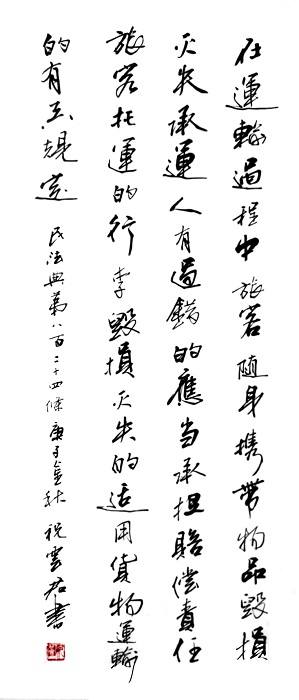 民法典第八百二十四條 在運輸過程中旅客隨身攜帶物品毀損、滅失,承運人有過錯的,應當承擔賠償責任。