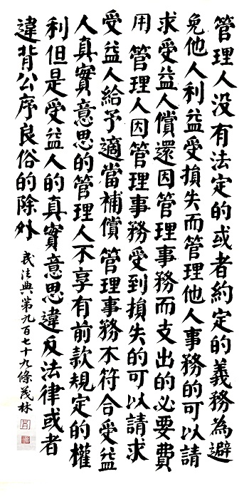 民法典第九百七十九條 管理人沒有法定的或者約定的義務(wù),為避免他人利益受損失而管理他人事務(wù)的,可以請(qǐng)求受益人償還因管理事務(wù)而支出的必要費(fèi)用;管理人因管理事務(wù)受到損失的,可以請(qǐng)求受益人給予適當(dāng)補(bǔ)償。