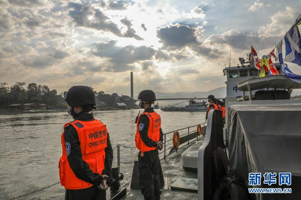 2月23日,第102次中老緬泰湄公河聯(lián)合巡邏執(zhí)法編隊(duì)啟航,中方執(zhí)法艇編隊(duì)巡航經(jīng)過瀾滄江景哈水域?! ⌒氯A社發(fā)(張壽晨 攝)