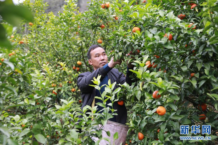 廣西樂業(yè)縣新化鎮(zhèn)百坭村村民班統(tǒng)茂在果園里忙碌(2月18日攝)。新華社記者 梁舜 攝