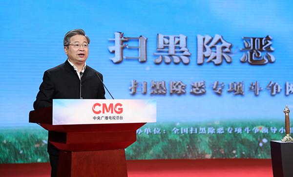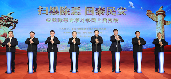 3月23日,“掃黑除惡 國泰民安——掃黑除惡專項斗爭網(wǎng)上展覽館”正式上線。中央政法委秘書長、全國掃黑辦主任陳一新,中宣部副部長、中央廣播電視總臺臺長兼總編輯慎海雄出席上線活動并致辭。