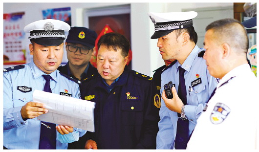 圖為天津市公安交管局南開支隊聯(lián)合南開區(qū)道路運輸執(zhí)法支隊進(jìn)行交通安全執(zhí)法檢查。 通訊員 戴武權(quán) 攝