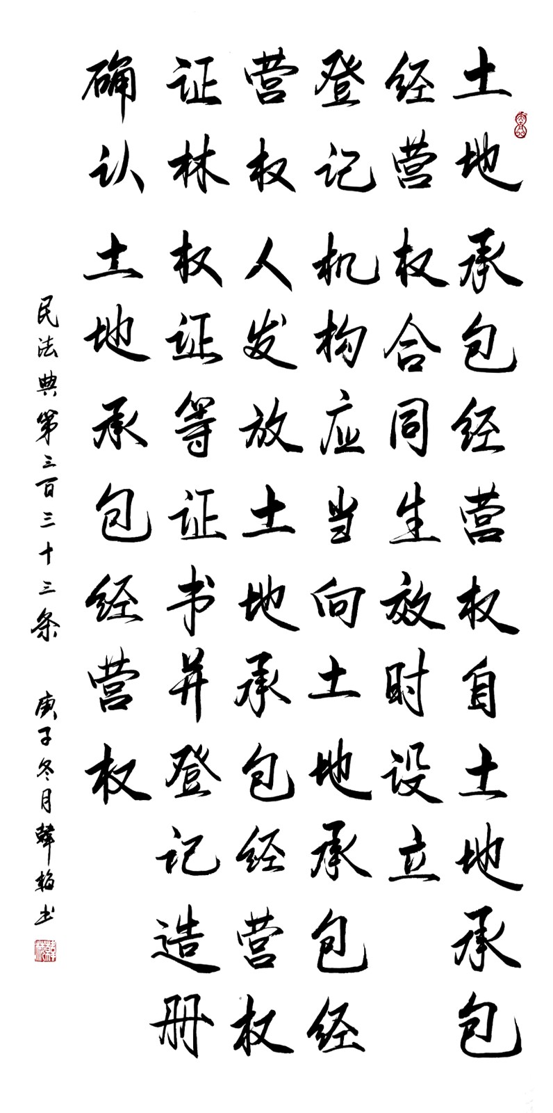 民法典第三百三十三條 土地承包經(jīng)營(yíng)權(quán)自土地承包經(jīng)營(yíng)權(quán)合同生效時(shí)設(shè)立。
