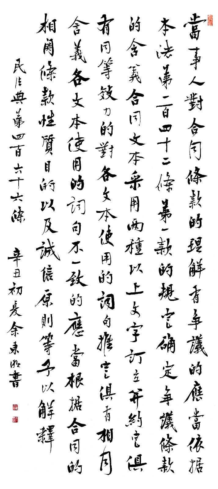 民法典第四百六十六條 當(dāng)事人對(duì)合同條款的理解有爭(zhēng)議的,應(yīng)當(dāng)依據(jù)本法第一百四十二條第一款的規(guī)定,確定爭(zhēng)議條款的含義。