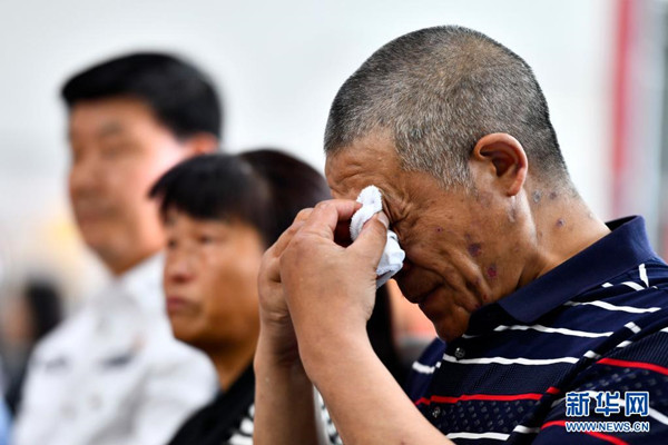 6月8日,在“認(rèn)親,我們在行動”濟(jì)南主會場,吳某林在擦拭眼淚,他即將與被拐多年的兒子相認(rèn)。新華社記者 郭緒雷 攝