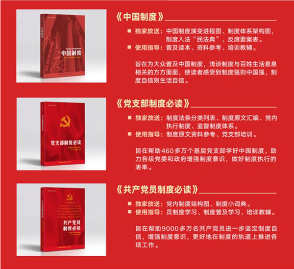李鐵教授的制度學系列叢書分為法制篇——《中國政治制度》《中國經濟制度》《中國文化制度》《中國社會制度》《中國生態(tài)文明制度》《黨內法規(guī)制度》《中國軍事制度》《中國法治制度》《中國農業(yè)制度》《中國科技制度》,自信篇——《5000年制度歷程》《中國制度》《黨支部制度必讀》《共產黨員制度必讀》《中國科舉制度》《中國文官制度》《中國法律制度》《中國行政制度》《把權利關進制度的籠子》,創(chuàng)新篇——《中國民法典與中國制度》《百年制度豐碑》等等。