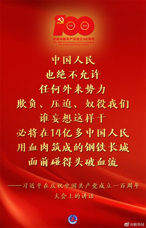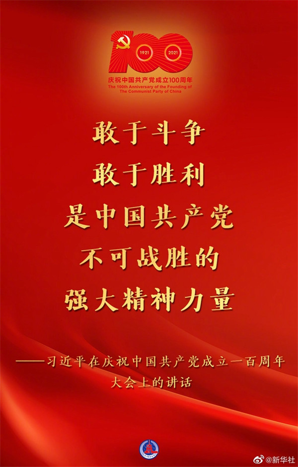 習(xí)近平在慶祝中國共產(chǎn)黨成立一百周年大會(huì)上的講話金句