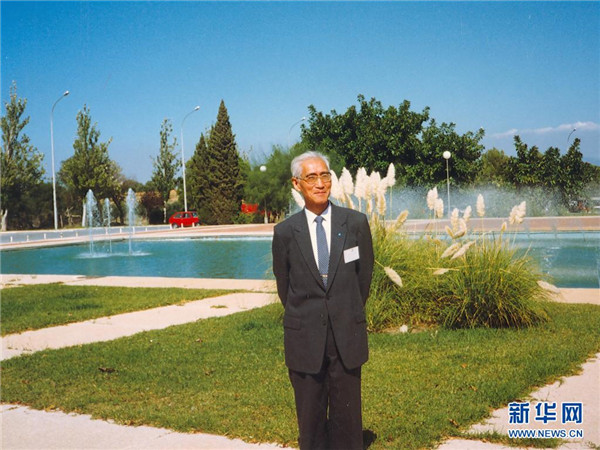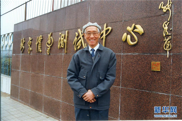 上世紀90年代,陸元九在北京慣導測試中心調(diào)研時在門前留影。新華社發(fā)(中國航天科技集團供圖)