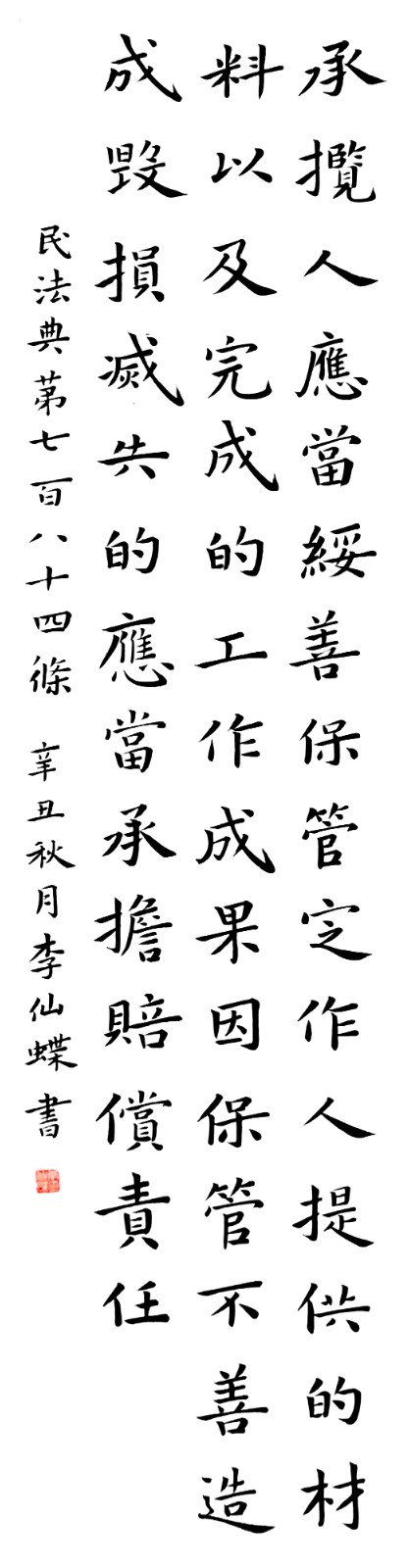 民法典第七百八十四條 承攬人應當妥善保管定作人提供的材料以及完成的工作成果,因保管不善造成毀損、滅失的,應當承擔賠償責任。