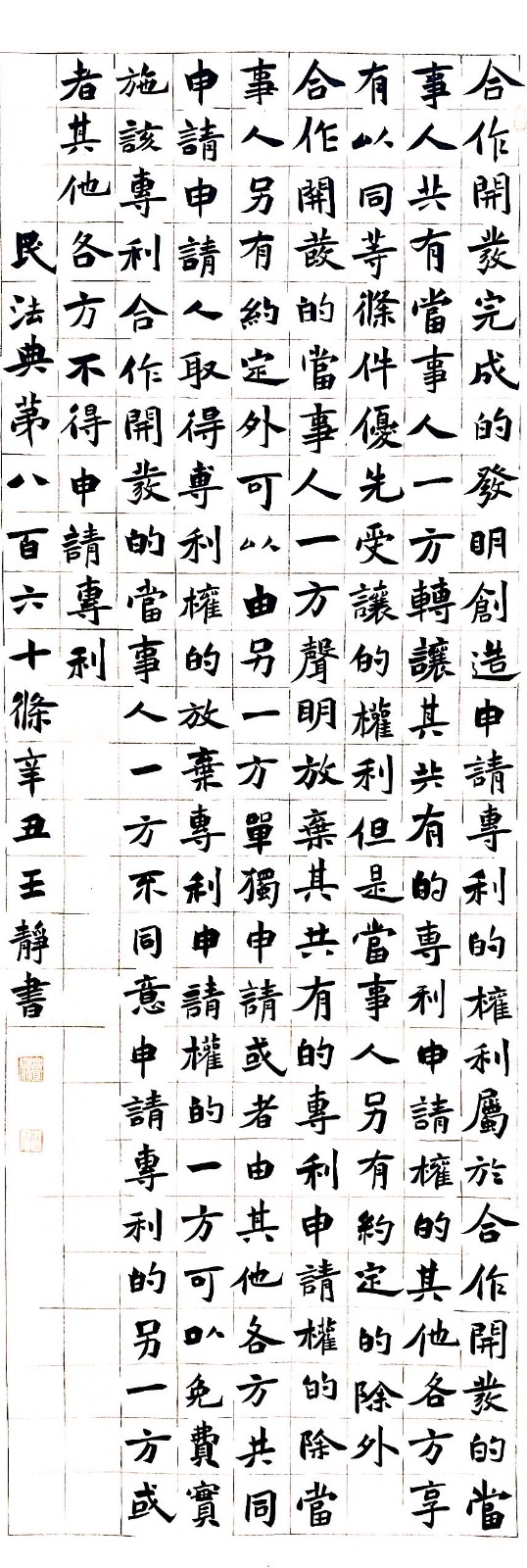 民法典第八百六十條 合作開發(fā)完成的發(fā)明創(chuàng)造,申請專利的權利屬于合作開發(fā)的當事人共有;當事人一方轉讓其共有的專利申請權的,其他各方享有以同等條件優(yōu)先受讓的權利。但是,當事人另有約定的除外。
