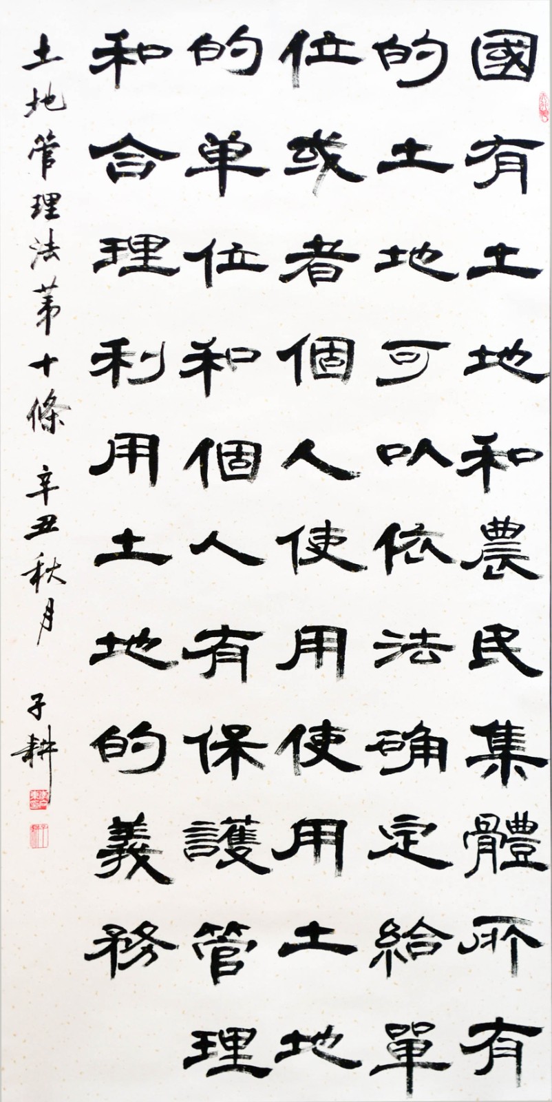 繼1600余位書法家參與書寫《中華人民共和國(guó)民法典》全部1260條法條之后,法治日?qǐng)?bào)社聯(lián)合自然資源部法規(guī)司、自然資源部書畫研究會(huì)和北京昌平書法家協(xié)會(huì),將筆端對(duì)準(zhǔn)土地管理“一法一條例”,即《中華人民共和國(guó)土地管理法》和《中華人民共和國(guó)土地管理法實(shí)施條例》。