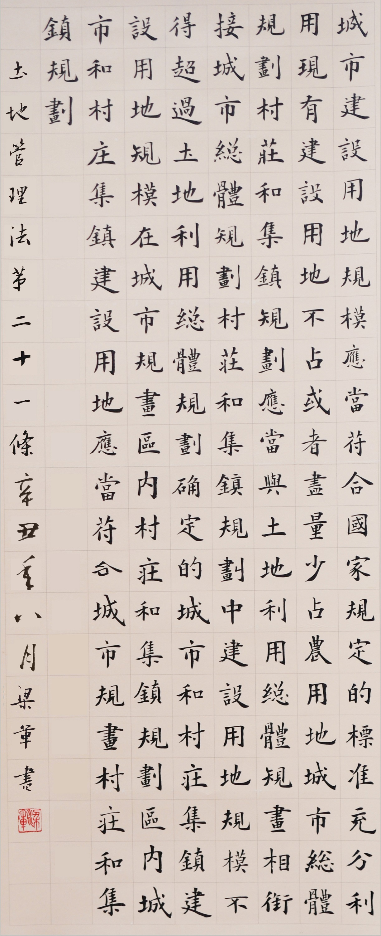 繼1600余位書法家參與書寫《中華人民共和國民法典》全部1260條法條之后,法治日報社聯(lián)合自然資源部法規(guī)司、自然資源部書畫研究會和北京昌平書法家協(xié)會,將筆端對準(zhǔn)土地管理“一法一條例”,即《中華人民共和國土地管理法》和《中華人民共和國土地管理法實施條例》。