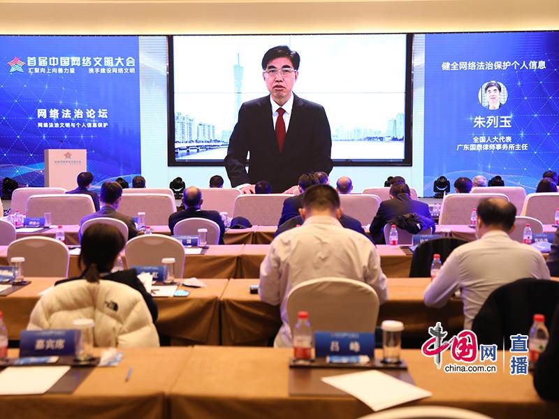 在主旨發(fā)言環(huán)節(jié),全國(guó)人大代表、廣東國(guó)鼎律師事務(wù)所主任朱列玉以“健全網(wǎng)絡(luò)法治 保護(hù)個(gè)人信息”為題進(jìn)行了發(fā)言交流,以下是發(fā)言內(nèi)容。