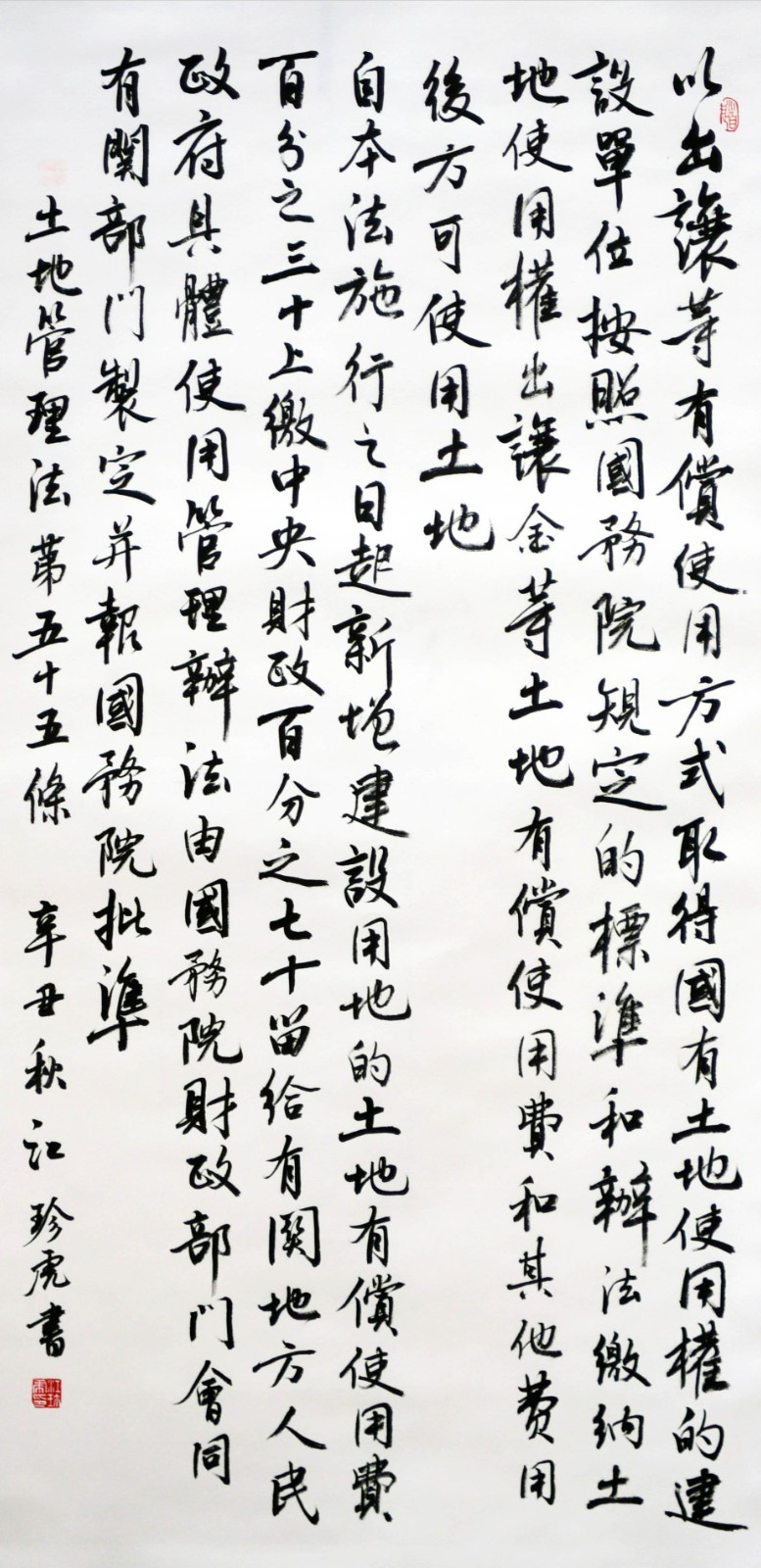 繼1600余位書法家參與書寫《中華人民共和國(guó)民法典》全部1260條法條之后,法治日?qǐng)?bào)社聯(lián)合自然資源部法規(guī)司、自然資源部書畫研究會(huì)和北京昌平書法家協(xié)會(huì),將筆端對(duì)準(zhǔn)土地管理“一法一條例”,即《中華人民共和國(guó)土地管理法》和《中華人民共和國(guó)土地管理法實(shí)施條例》。