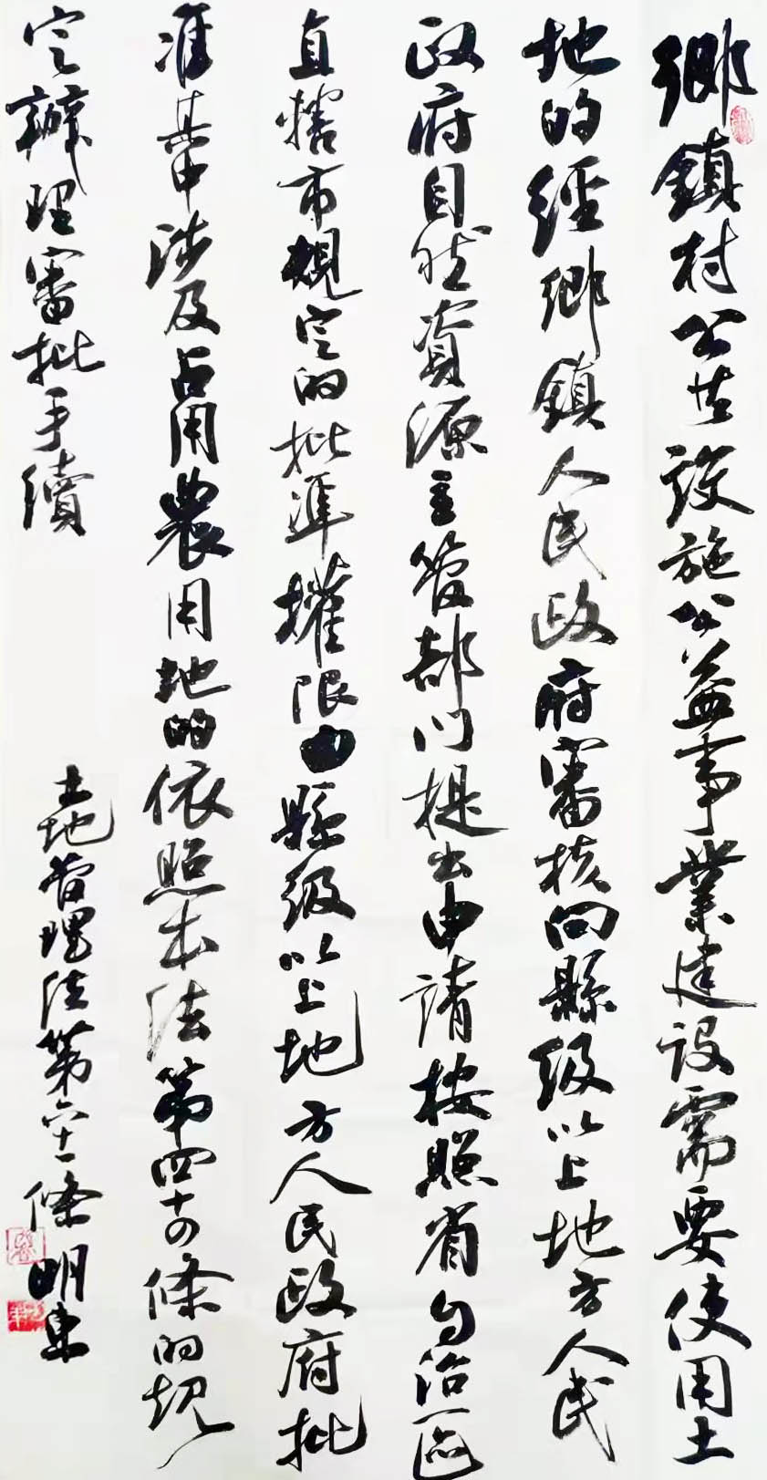 繼1600余位書法家參與書寫《中華人民共和國民法典》全部1260條法條之后,法治日報社聯(lián)合自然資源部法規(guī)司、自然資源部書畫研究會和北京昌平書法家協(xié)會,將筆端對準(zhǔn)土地管理“一法一條例”,即《中華人民共和國土地管理法》和《中華人民共和國土地管理法實(shí)施條例》。