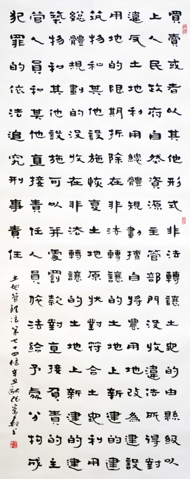 繼1600余位書法家參與書寫《中華人民共和國民法典》全部1260條法條之后,法治日報社聯(lián)合自然資源部法規(guī)司、自然資源部書畫研究會和北京昌平書法家協(xié)會,將筆端對準(zhǔn)土地管理“一法一條例”,即《中華人民共和國土地管理法》和《中華人民共和國土地管理法實(shí)施條例》。