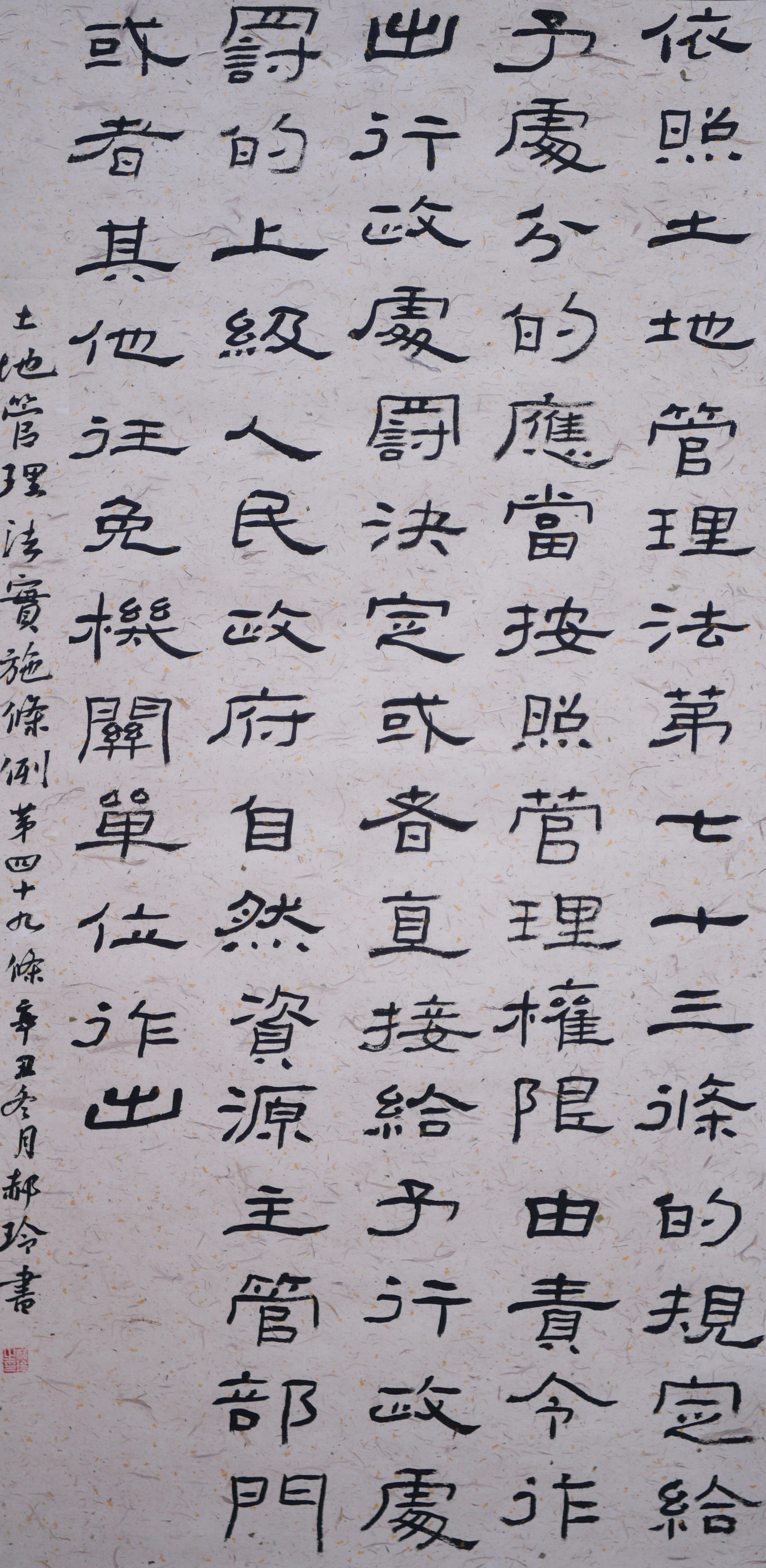 繼1600余位書法家參與書寫《中華人民共和國民法典》全部1260條法條之后,法治日報社聯(lián)合自然資源部法規(guī)司、自然資源部書畫研究會和北京昌平書法家協(xié)會,將筆端對準(zhǔn)土地管理“一法一條例”,即《中華人民共和國土地管理法》和《中華人民共和國土地管理法實施條例》。