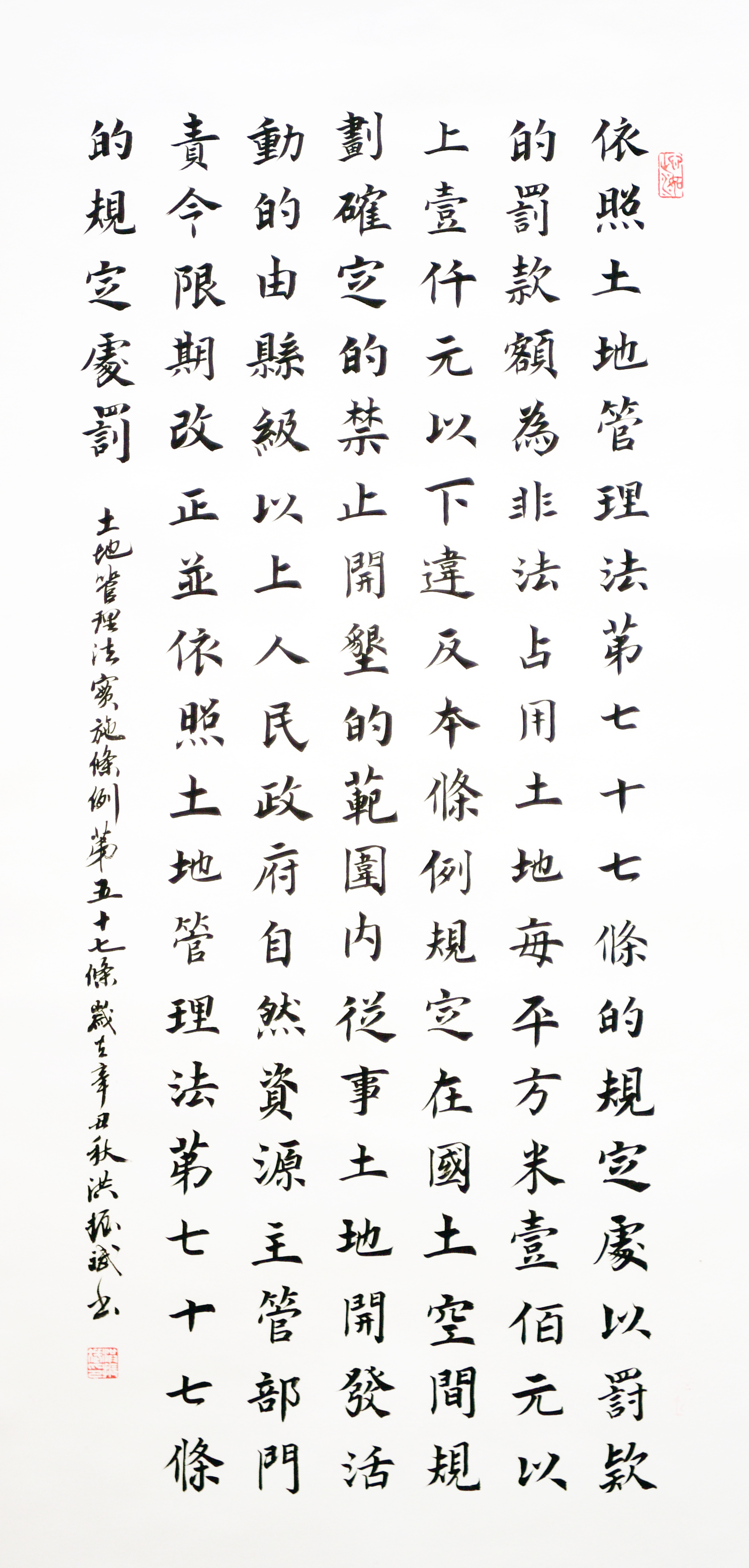 繼1600余位書法家參與書寫《中華人民共和國民法典》全部1260條法條之后,法治日報社聯合自然資源部法規(guī)司、自然資源部書畫研究會和北京昌平書法家協會,將筆端對準土地管理“一法一條例”,即《中華人民共和國土地管理法》和《中華人民共和國土地管理法實施條例》。
