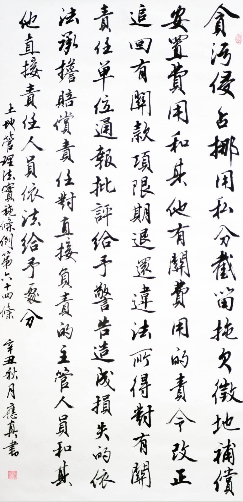 繼1600余位書法家參與書寫《中華人民共和國(guó)民法典》全部1260條法條之后,法治日?qǐng)?bào)社聯(lián)合自然資源部法規(guī)司、自然資源部書畫研究會(huì)和北京昌平書法家協(xié)會(huì),將筆端對(duì)準(zhǔn)土地管理“一法一條例”,即《中華人民共和國(guó)土地管理法》和《中華人民共和國(guó)土地管理法實(shí)施條例》。