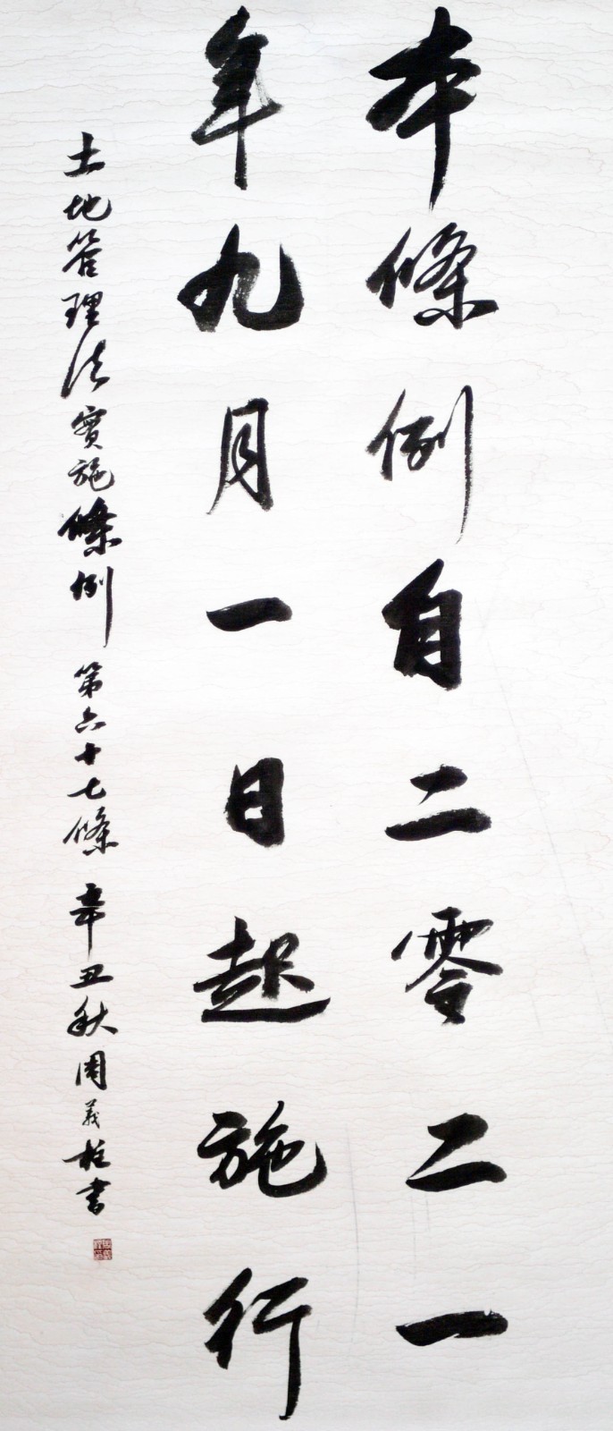 繼1600余位書法家參與書寫《中華人民共和國民法典》全部1260條法條之后,法治日?qǐng)?bào)社聯(lián)合自然資源部法規(guī)司、自然資源部書畫研究會(huì)和北京昌平書法家協(xié)會(huì),將筆端對(duì)準(zhǔn)土地管理“一法一條例”,即《中華人民共和國土地管理法》和《中華人民共和國土地管理法實(shí)施條例》。