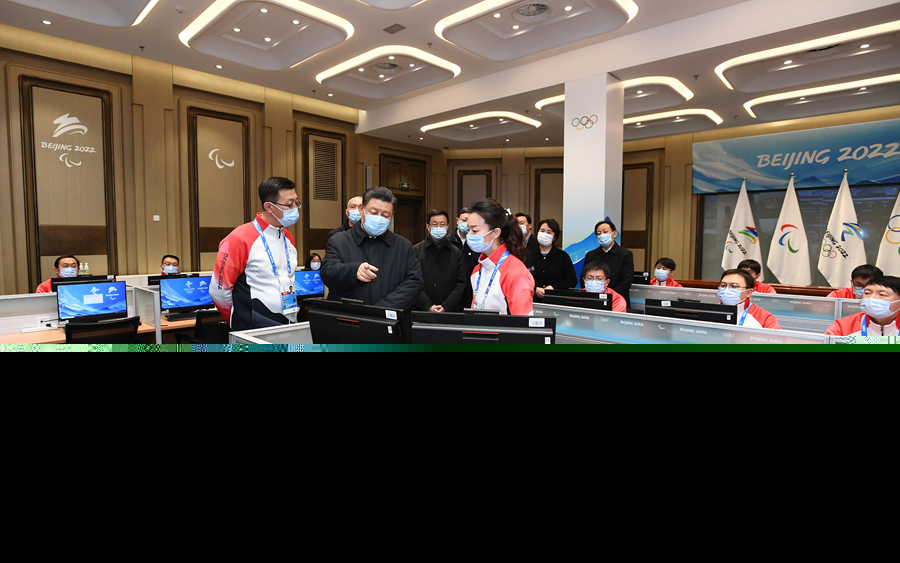 1月4日,中共中央總書記、國家主席、中央軍委主席習(xí)近平在北京考察2022年冬奧會、冬殘奧會籌辦備賽工作。這是4日下午,習(xí)近平在北京冬奧運行指揮部調(diào)度中心考察。新華社記者 謝環(huán)馳 攝
