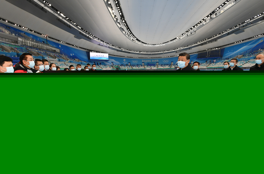 1月4日,中共中央總書記、國家主席、中央軍委主席習(xí)近平在北京考察2022年冬奧會、冬殘奧會籌辦備賽工作。這是4日上午,習(xí)近平在國家速滑館考察。新華社記者 謝環(huán)馳 攝