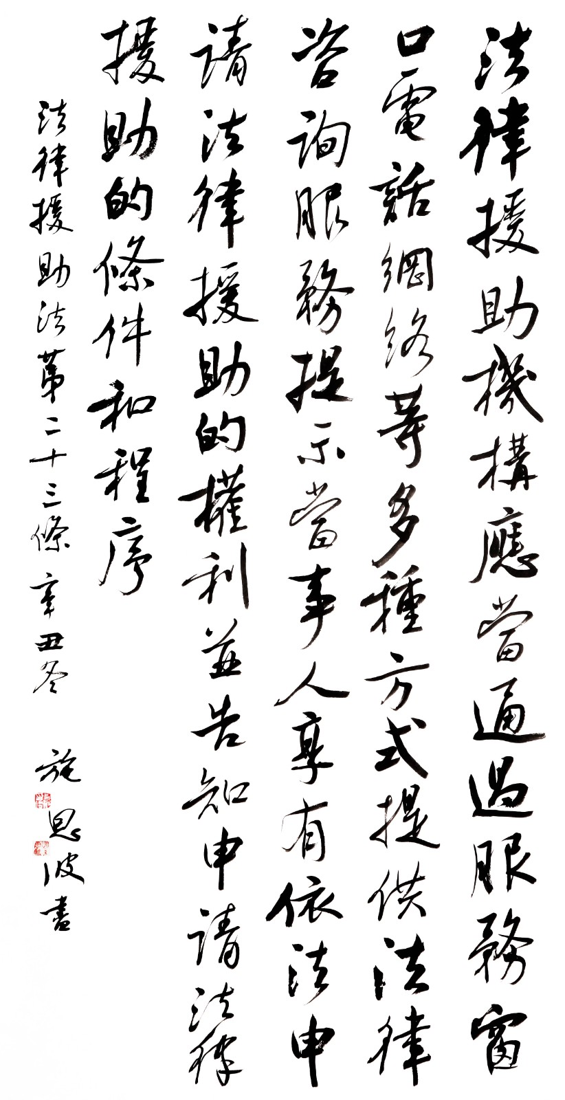 “書·法”活動旨在為創(chuàng)新法治宣傳教育,多開一點腦洞、多花一點心思、多出一點力量、多做一點貢獻(xiàn),引領(lǐng)和推動更多的人拿起筆來學(xué)法、寫法,在不斷“書·法”過程中,提升自身的法治素養(yǎng),在全社會弘揚法治精神。