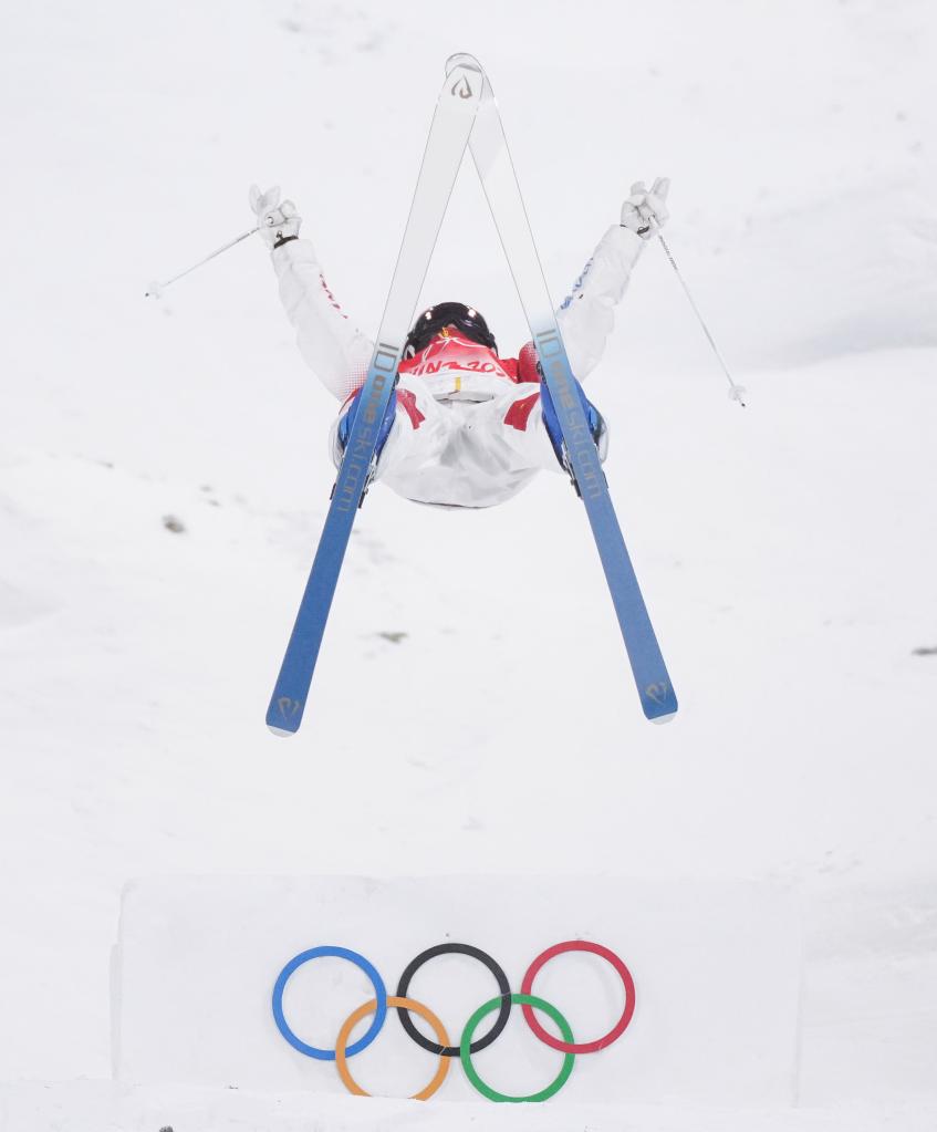 2月3日,加拿大選手米卡埃爾·金斯伯里在北京冬奧會自由式滑雪男子雪上技巧資格賽第1輪比賽中。新華社記者 胡虎虎 攝