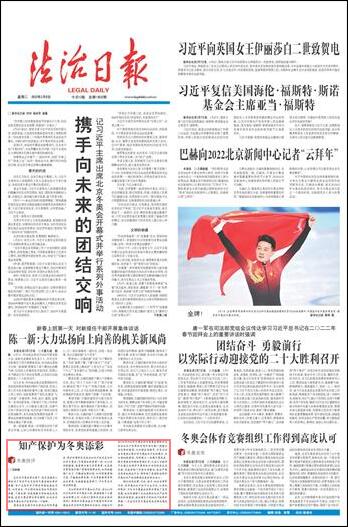 綜合運(yùn)用法律、行政、技術(shù)、社會(huì)治理等手段,對(duì)涉奧知識(shí)產(chǎn)權(quán)予以全方位、立體化的保護(hù),不僅為冬奧盛會(huì)的舉辦營(yíng)造了良好氛圍,也切實(shí)增強(qiáng)了全社會(huì)保護(hù)知識(shí)產(chǎn)權(quán)的意識(shí)和自覺性。相信強(qiáng)有力的知識(shí)產(chǎn)權(quán)保護(hù)舉措,一定會(huì)為北京冬奧會(huì)的成功舉辦增色添彩。