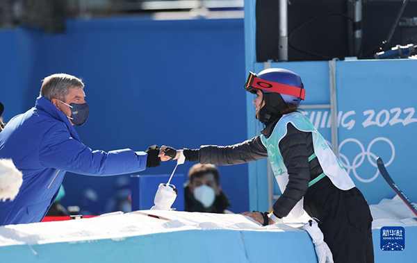 國際奧委會主席巴赫向中國選手谷愛凌表示祝賀