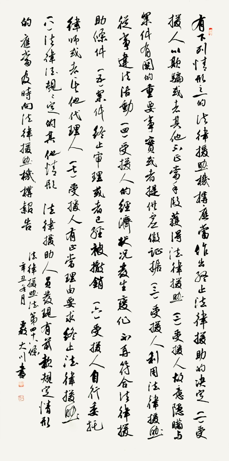 法律援助法第四十八條 有下列情形之一的,法律援助機(jī)構(gòu)應(yīng)當(dāng)作出終止法律援助的決定: