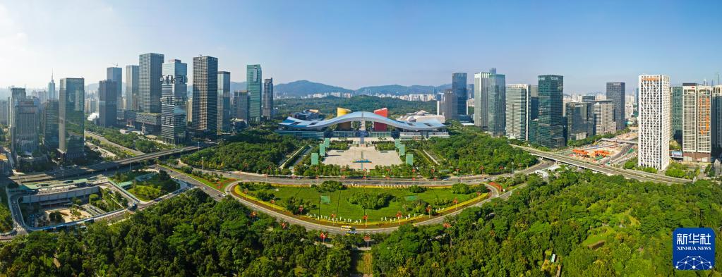 這是深圳市民中心和蓮花山公園一線(2020年10月2日攝,無人機(jī)照片)。新華社記者 梁旭 攝