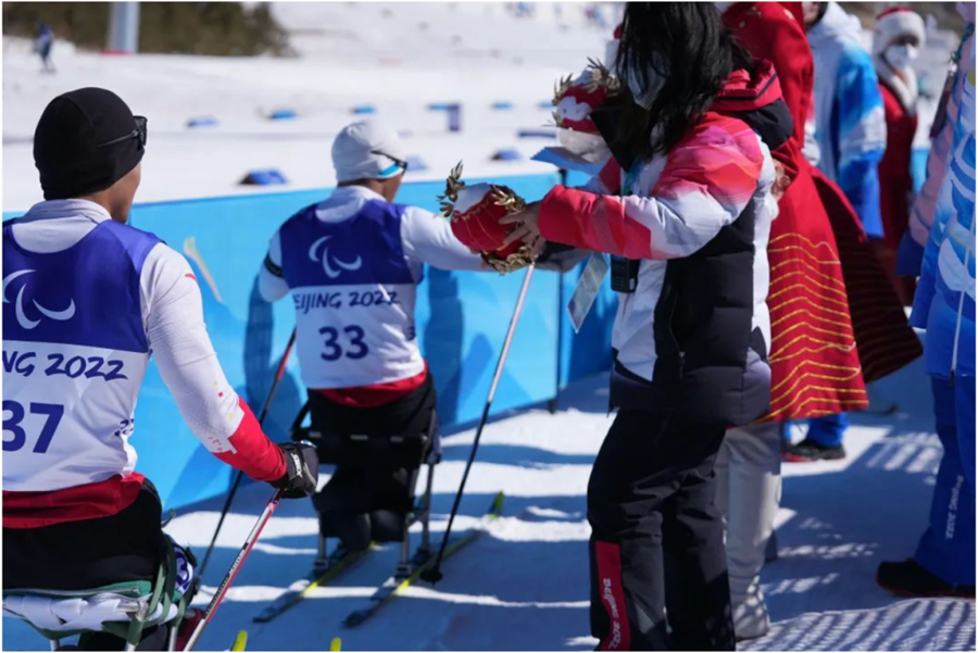 中國冬殘奧運動員在生活中自尊自立、奉獻社會,在賽場上同樣表現優(yōu)異,他們奮勇拼搏、挑戰(zhàn)極限,展現了強者風范,帶給人們精神的鼓舞和震撼。