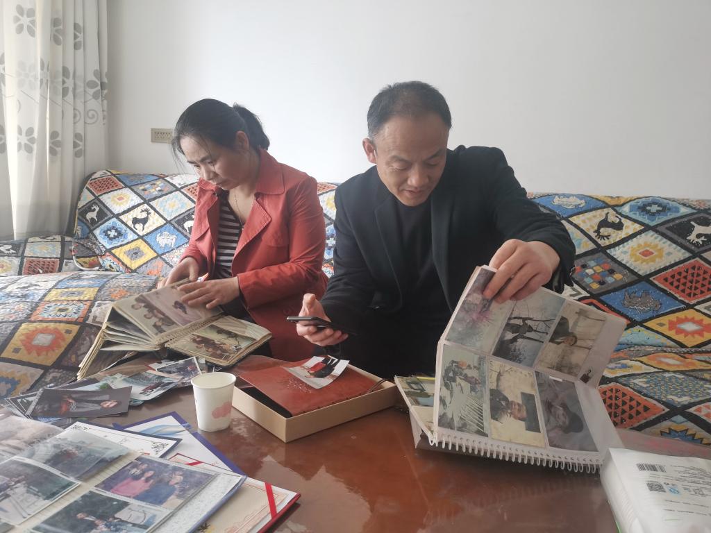 劉子旭的父母在家中翻看孩子小時候的照片。