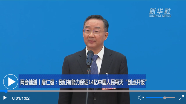 在3月5日的十三屆全國人大五次會議首場“部長通道”上,農業(yè)農村部部長唐仁健說,今年既要抓夏糧,也要立足全年抓好糧食生產。目前我國糧食供應總量是充裕的,人均糧食占有量483公斤,比去年的474公斤增加了9公斤。不管國際形勢怎么變化,我們有能力保證14億多人每天到點開飯、不餓肚子,飯碗越端越穩(wěn)、越吃越好。(記者于文靜、許可)