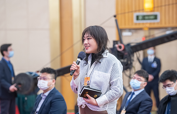 3月8日上午,十三屆全國人大五次會議舉行第二場“代表通道”采訪活動。圖為全國人大代表、重慶市謝家灣學校校長劉希婭正在回答本報記者提問。本報記者 王建軍 攝