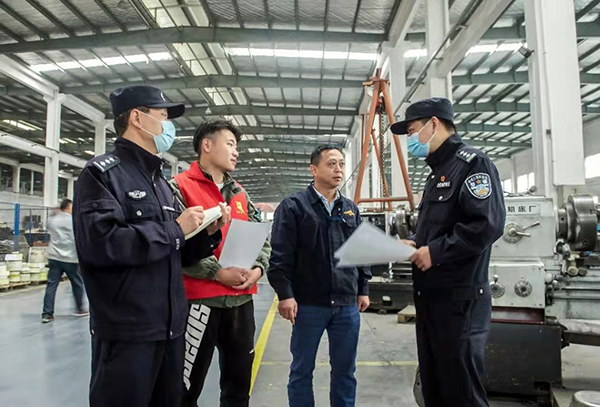 浙江省武義縣公安局熟溪派出所組建“紅風(fēng)箏”助企服務(wù)驛站,切實為轄區(qū)企業(yè)做好外來人口服務(wù)管理工作,及時排查化解企業(yè)員工間的矛盾糾紛,組織平安志愿者開展護(hù)企巡邏,為企業(yè)發(fā)展提供良好治安環(huán)境。圖為民警走訪企業(yè)了解治安情況。 徐文榮 攝