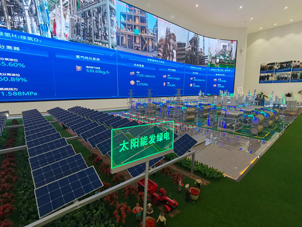 寧夏寶豐能源集團(tuán)太陽能電解水制氫項目沙盤。(新華社記者靳赫攝)