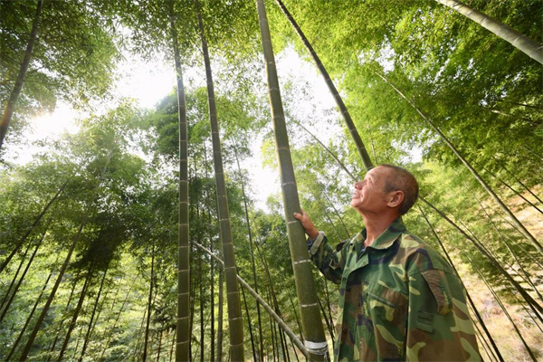 福建三明永安市洪田鎮(zhèn)湍石村村民在查看毛竹長(zhǎng)勢(shì)(2020年11月26日攝)。新華社記者姜克紅攝