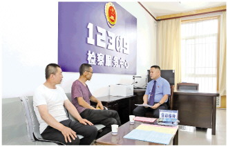 圖為王文喜(右一)在檢察服務(wù)中心接待來訪群眾。 本報(bào)通訊員 周潤(rùn)霞 攝