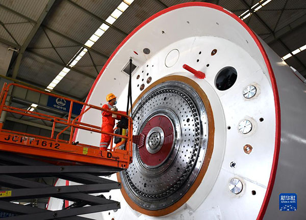 工人在位于河南省鄭州市的中鐵工程裝備集團盾構(gòu)機總裝車間作業(yè)(2020年3月18日攝)。新華社記者 李嘉南 攝