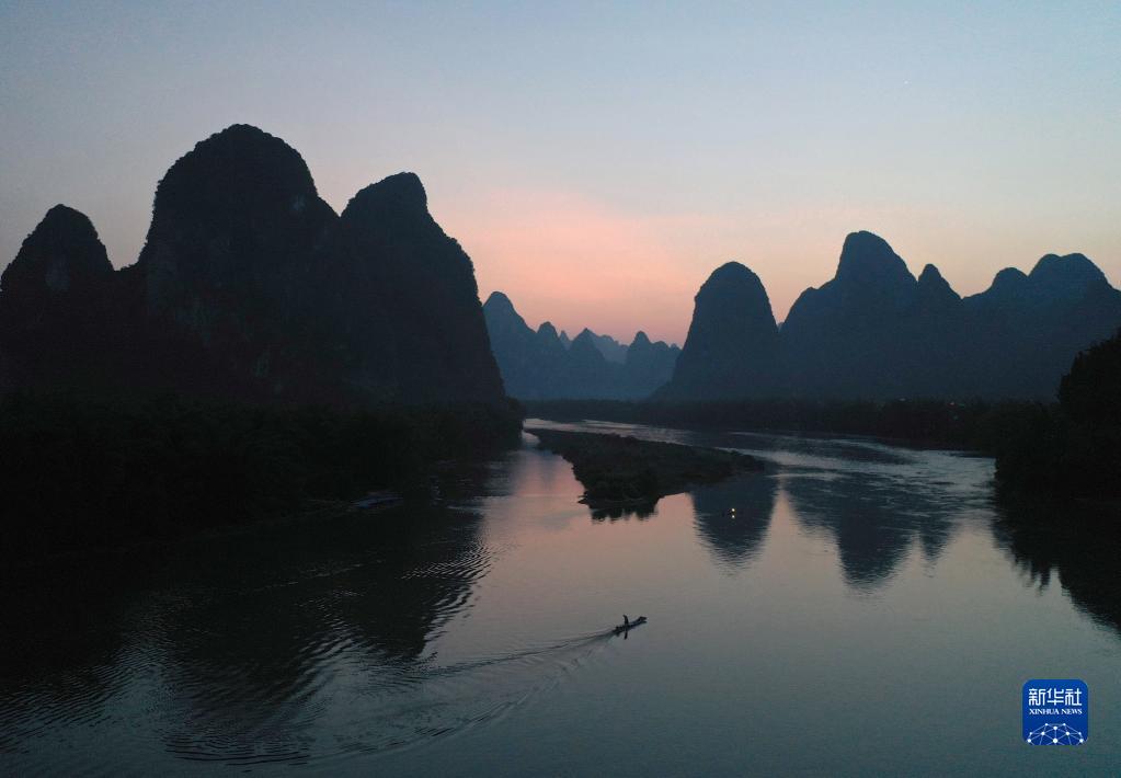 這是在廣西陽朔縣興坪鎮(zhèn)拍攝的漓江風(fēng)光(2020年5月19日攝,無人機(jī)照片)。新華社記者 周華 攝