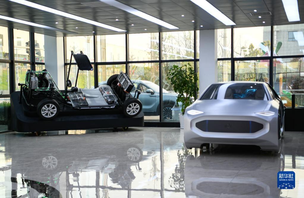 在四川省廣安市鄰水縣川渝高竹新區(qū)一家企業(yè)展廳內(nèi)拍攝的展車(2021年3月24日攝)。新華社記者 王曦 攝