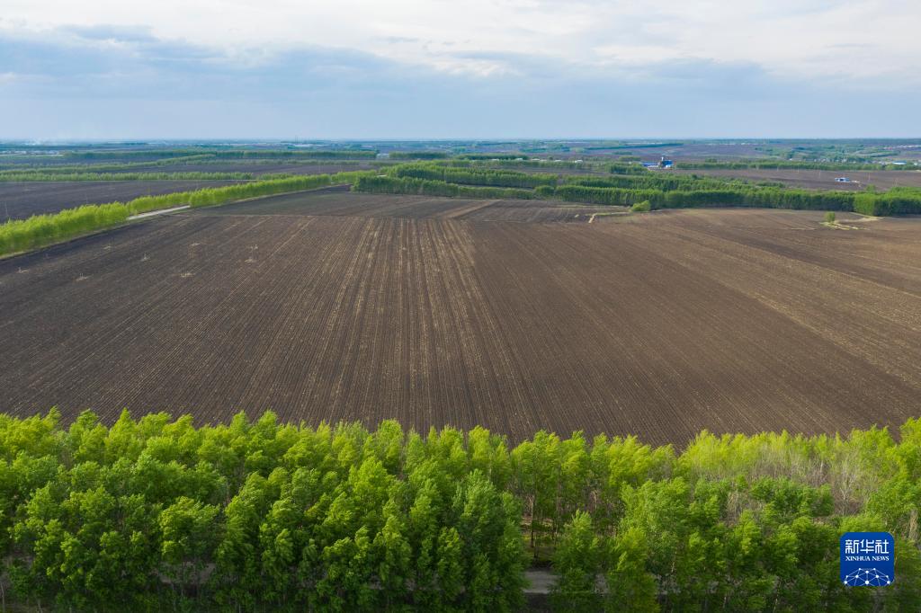 黑龍江省海倫市前進(jìn)鎮(zhèn)光榮村已完成播種的黑土耕地(2022年5月23日攝,無(wú)人機(jī)照片)。新華社記者 謝劍飛 攝
