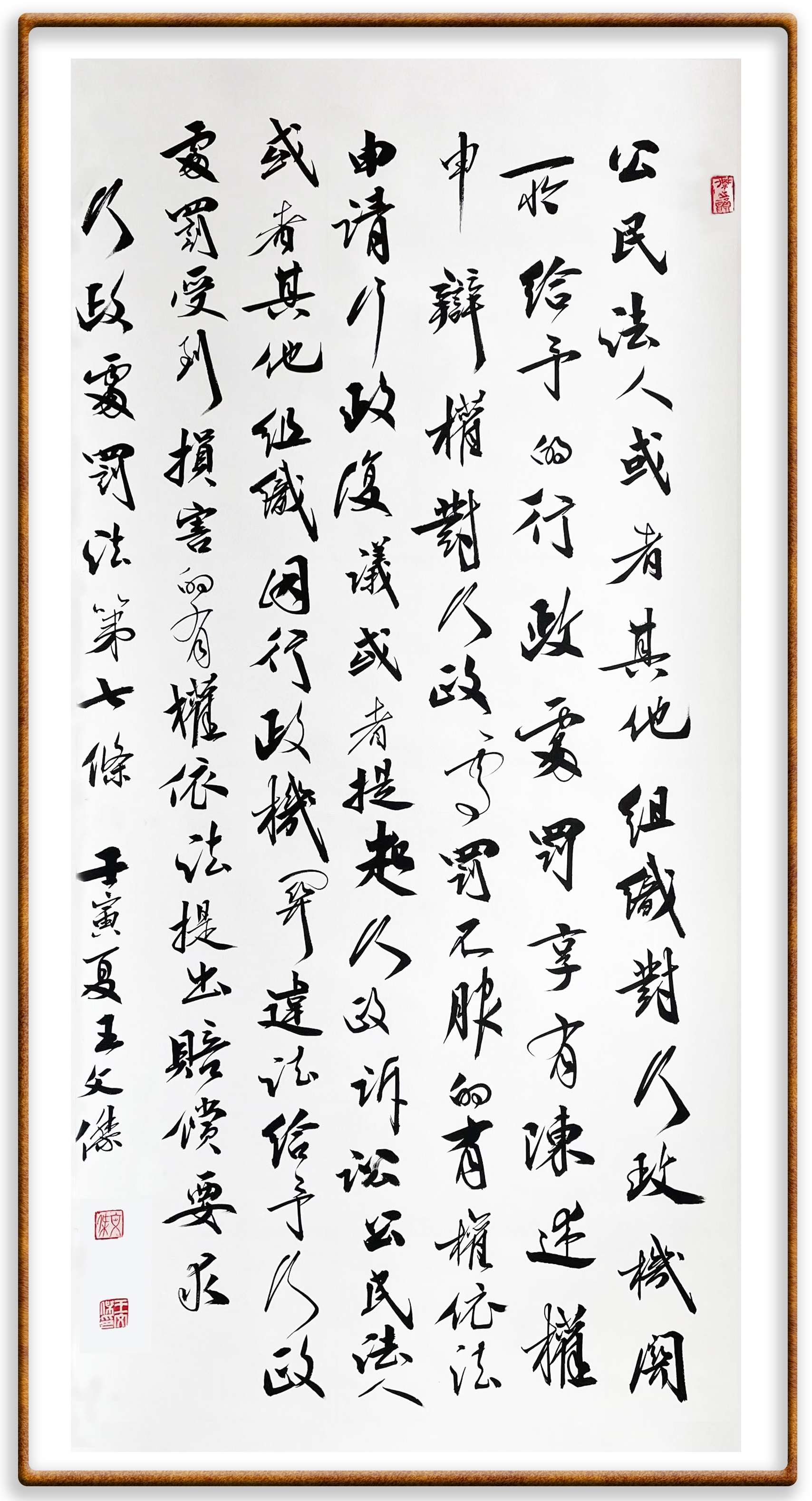 繼《中華人民共和國(guó)民法典》《中華人民共和國(guó)土地管理法》《中華人民共和國(guó)土地管理法實(shí)施條例》《中華人民共和國(guó)法律援助法》之后,法治日?qǐng)?bào)社聯(lián)合北京市司法局、北京市書法家協(xié)會(huì),將筆端對(duì)準(zhǔn)《中華人民共和國(guó)憲法》和《中華人民共和國(guó)行政處罰法》。