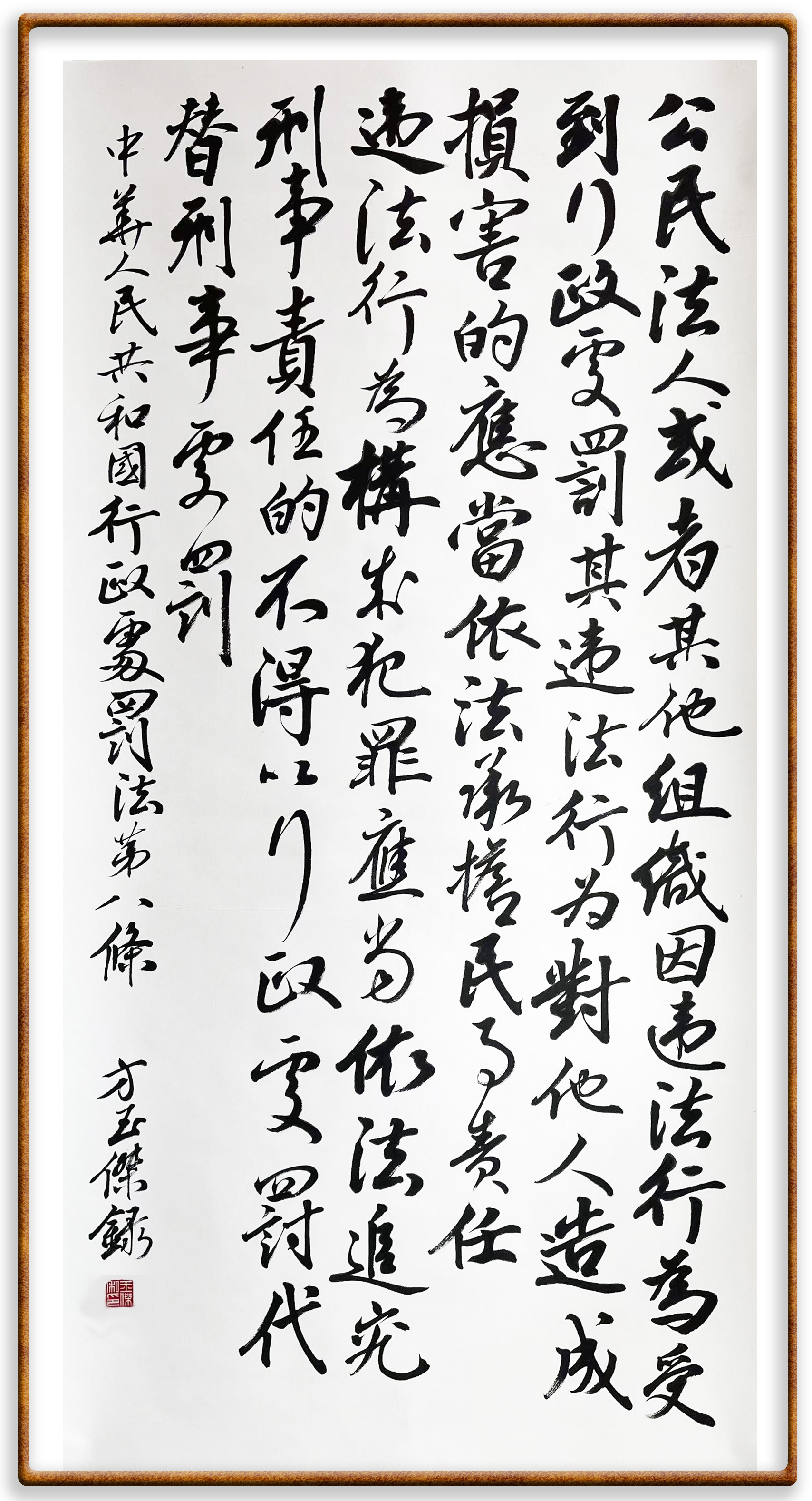 繼《中華人民共和國民法典》《中華人民共和國土地管理法》《中華人民共和國土地管理法實施條例》《中華人民共和國法律援助法》之后,法治日報社聯(lián)合北京市司法局、北京市書法家協(xié)會,將筆端對準(zhǔn)《中華人民共和國憲法》和《中華人民共和國行政處罰法》。