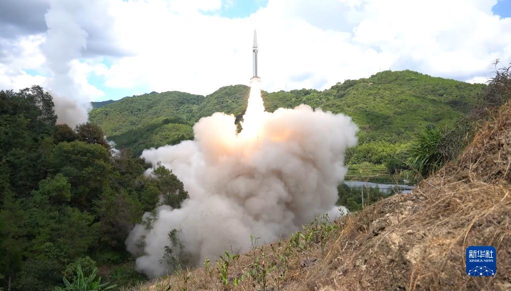 東部戰(zhàn)區(qū)火箭軍對(duì)臺(tái)島東部外海預(yù)定海域?qū)嵤┗鹆ν粨簟_@是導(dǎo)彈發(fā)射升空(2022年8月4日,視頻截圖)。新華社發(fā)